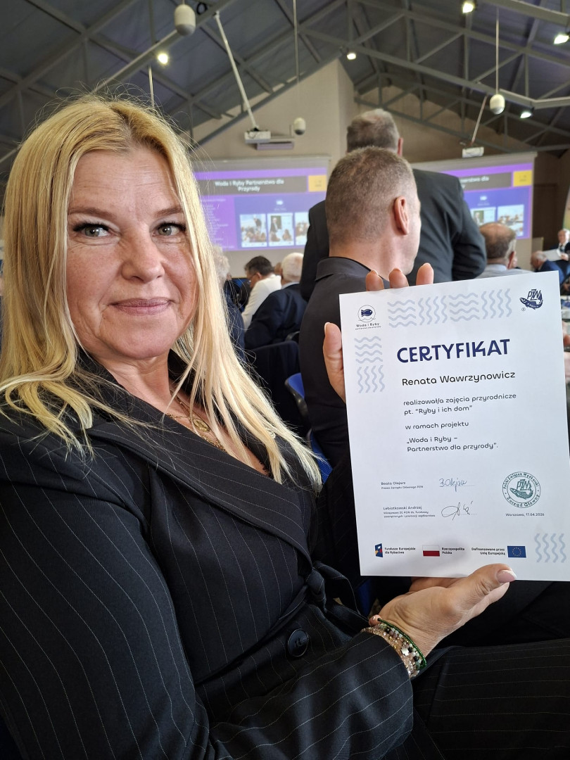Krajowy Zjazd Delegatów to także okazja do podziękowania za wkład pracy na rzecz PZW, w tym w działalność młodzieżową. Z przyjemnością informujemy, że Koleżanka Renata Wawrzynowicz otrzymała Certyfikat za realizację w naszym Okręgu zajęć pt. "Ryby i ich dom" w ramach ogólnopolskiego projektu "Woda i ryby. Partnerstwo dla przyrody." Serdecznie gratulujemy!